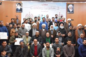 وقد اختتم الحفل ” بتقديم كتب الشكر والتقدير مع هدية مكتب المرجعية للمواكب والهيئات الحسينية من قبل مدير مكتب المرجعية في البصرة فضيلة الشيخ عمار الربيعي ومسؤول مؤسسة الصلاة عمود الدين فضيلة السيد صادق الياسري وعددا من الفضلاء واساتذة الحوزة الشريفة .
