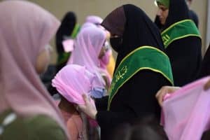 الحفل الذي أقيم على قاعة جامع الرحمن بالمنصور حضره مدير مكتب المرجعية في الكرخ الشيخ عادل الساعدي وعدد من فضلاء الحوزة الدينية والمبلغات الرساليات وجمع من النساء