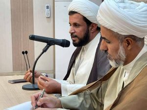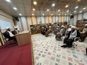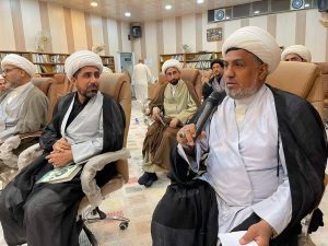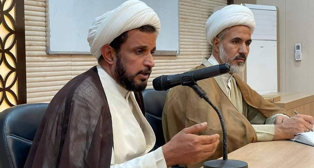 اقام مكتب المرجع الديني الشيخ محمد اليعقوبي في بغداد/ الرصافة خلال استقباله مسؤول المساجد في مكتب المرجع في النجف الاشرف الشيخ عمار النصر الله ندوة فكرية لبحث بناء المجتمع والارتقاء بالفرد المسلم