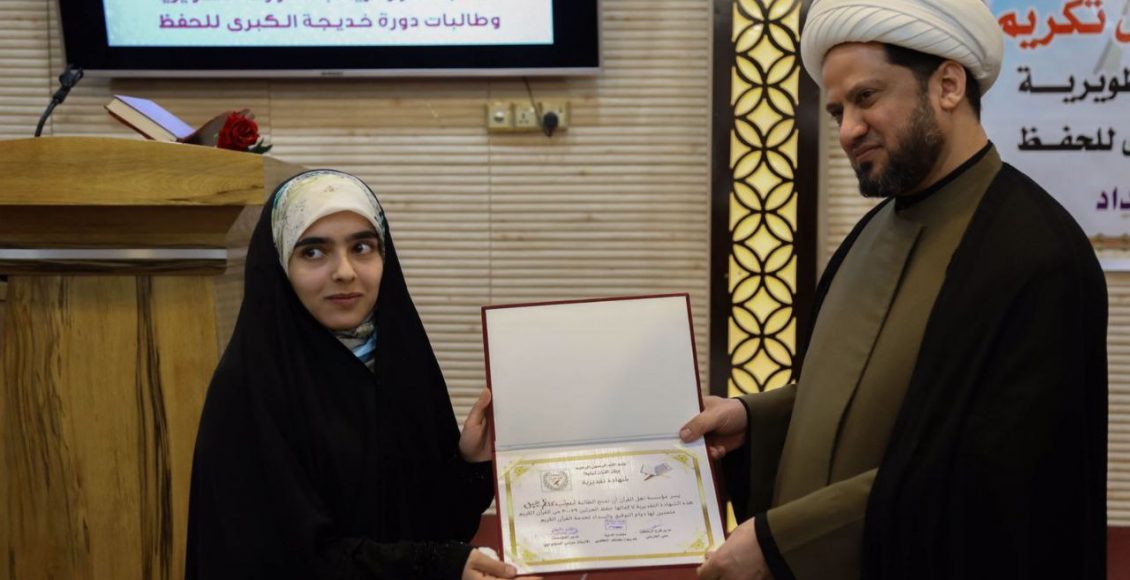 احتفى مكتب المرجع الديني الشيخ محمد اليعقوبي (دام. ظله ) بغداد الرصافة بتخرج مجموعة طالبات حفظنّ اجزاء من القرآن الكريم في حفل تكريم والذي اقامته مؤسسة اهل القرآن