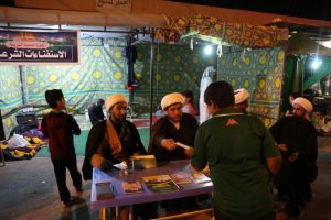 مكتب سماحة المرجع الديني الشيخ اليعقوبي (دام ظله الشريف) بغداد الكرخ ينصب مواكب الوعي والإصلاح الديني في سامراء المقدسة على امتداد طريق الزائرين للإجابة عن اسئلتهم الفقهية والعقائدية والأخلاقية بالإضافة الى المواكب الخدمية التي تقدم الطعام والشراب للزائرين الكرام.