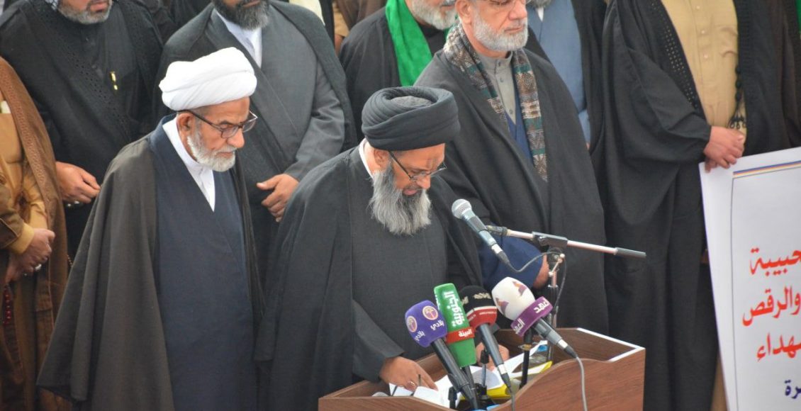 وقفة احتجاجية لرجال الدين في البصرة للمطالبة بمنع الحفلات الماجنة والتأكيد على الهوية الاسلامية