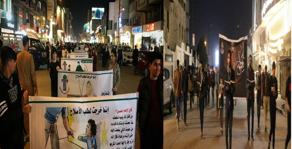 تجمع فتية امير المؤمنين (عليه السلام) في النجف الاشرف يحيي ذكرى شهادة الصديقة الطاهرة فاطمة الزهراء (عليها السلام) في ليلة رأس السنة الميلادية بمسيرة صامته في شارع الروان ردا على ما يحصل من مظاهر ماجنة في تلك الليلة .