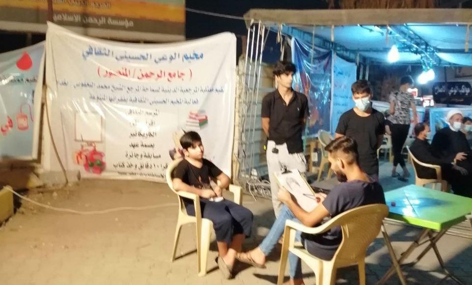 في اطار حملة اعادة الحياة للمساجد بعد التعطيل في جائحة كورونا ممثلية سماحة المرجع الديني الشيخ محمد اليعقوبي (دام ظله)– بغداد الكرخ مستمرة بفعالياتها الحسينية في جامع الرحمن في المنصور حيث يستمر نصب مخيم الوعي الحسيني الثقافي بفعالياته المتنوعة. كما تستمر المجالس الحسينية اليومية.