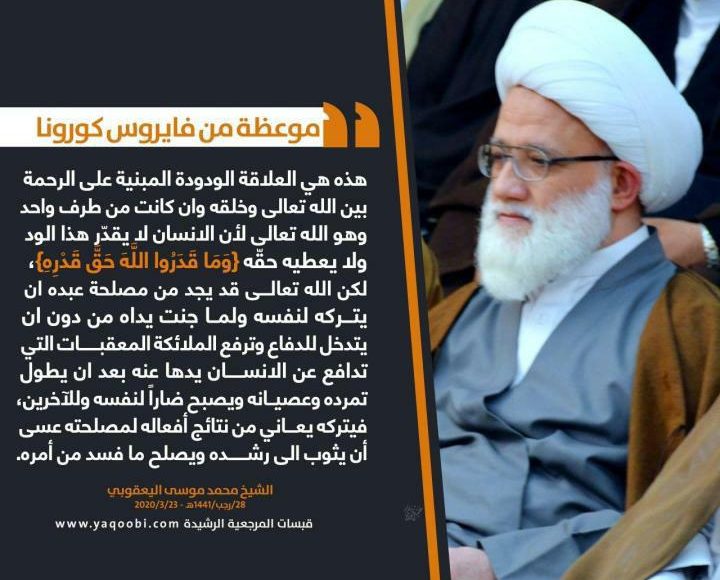 المرجع اليعقوبي : فايروس كورونا يغيّر العالم ويعيد تشكيله