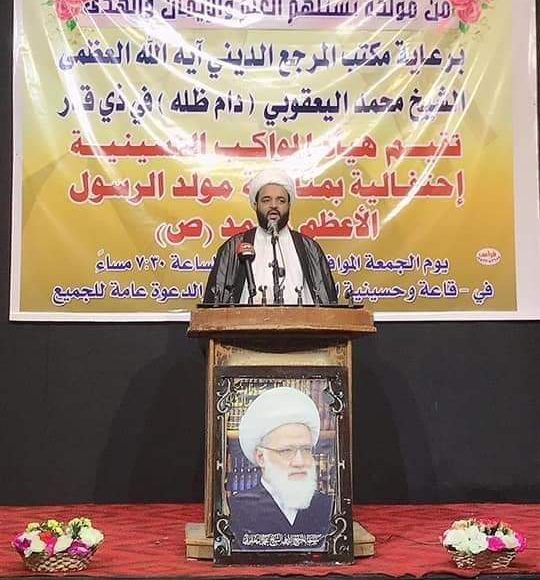 بالصور هيأة المواكب الحسينية في مكتب المرجع اليعقوبي ذي قار تقيم احتفالية بمناسبة ولادة الرسول الاعظم (ص )على قاعة السفراء الاربعة في سومر تحت شعار من مولده نستلهم العلم والايمان والهدى.