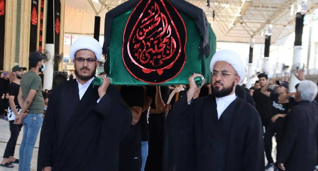 في ذكرى شهادة السبط المجتبى (ع) إنطلق التشييع الرمزي لنعش الإمام (ع) ،انطلاقاً من بداية شارع زين العابدين( ع) إلى المرقد الشريف لمولى الموحدين علي ابن أبي طالب (ع) مواساة له بمصيبة ولده السبط المجتبى( ع)