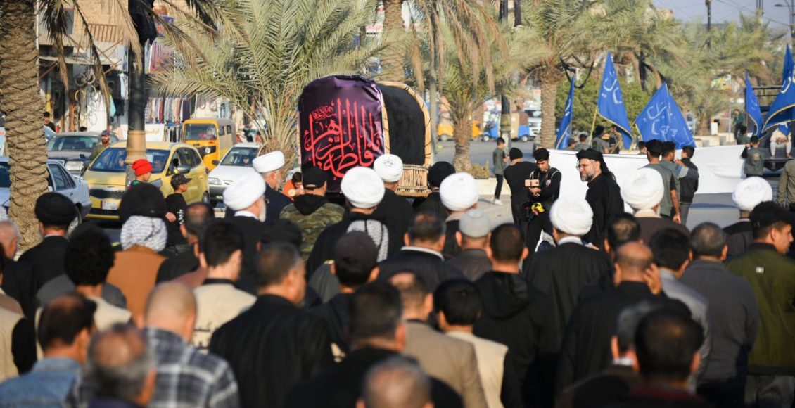 شعلة الصدرين تنظم تشييعا رمزيا لنعش الصديقة فاطمة الزهراء عليها السلا