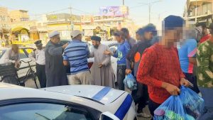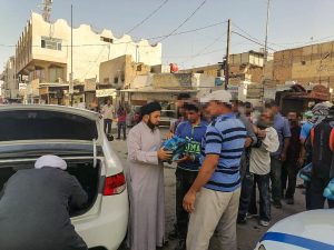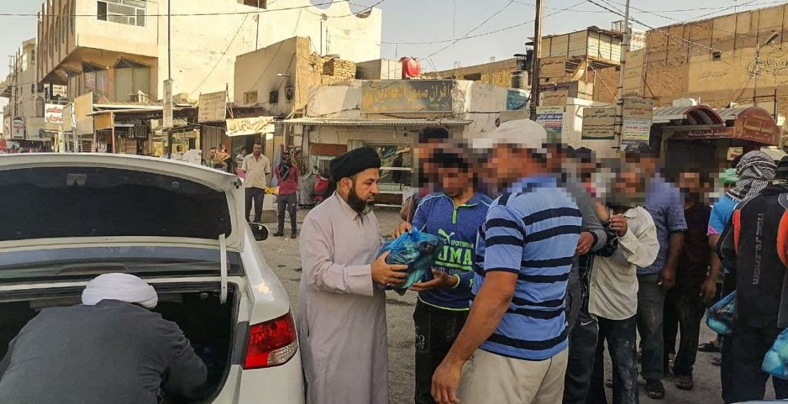 قامت مؤسسة كرم السجاد الخيرية التابعة لمكتب المرجع الديني الشيخ محمد اليعقوبي (دام ظله) في الديوانية، صباح يوم الثلاثاء، بتوزيع السلات الغذائية على عمال البناء في مسطر العمال اصحاب القوت اليومي بمناسبة الذكرى السنوية لاستشهاد السيد محمد محمد صادق الصدر الثاني (قدس سره) ونجليه في مركز المحافظة.
