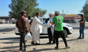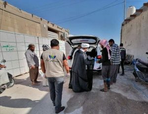 ضمن فعاليات اسبوع الولاية وبرعاية مكتب المرجع الديني الشيخ محمد اليعقوبي دام ظله في السماوة مؤسسة فيض الزهراء (ع) لرعاية الأيتام والفقراء فرع المثنى تقوم بتوزيع السلة الغذائية على العمال والكسبة في ساحة العمال -المسطر- الذين لم يحصلوا على عمل في ذلك اليوم وبقوا منتظرين رزقهم لوقت متأخر في الساحة .