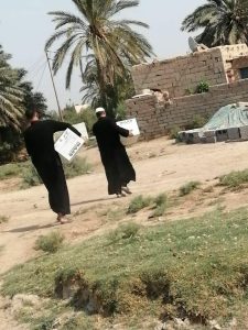 1- توزيع سلة غذائية على عوائل الأيتام والفقراء حسب البرنامج الشهري للتوزيع على مناطق القضاء.