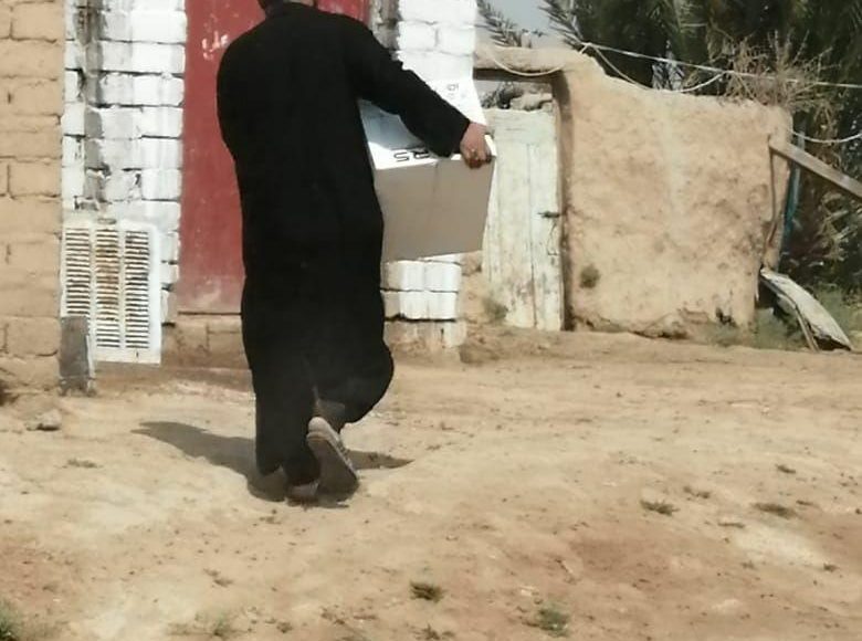 1- توزيع سلة غذائية على عوائل الأيتام والفقراء حسب البرنامج الشهري للتوزيع على مناطق القضاء.