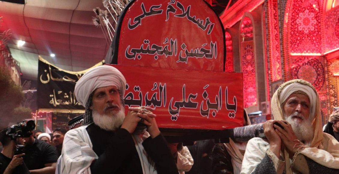 المشيعين استذكروا بألم وحسرة عظمة هذه الرزيّة التي ألمّت بالمسلمين لفقدِها سبط النبي الأكرم (صلى الله عليه وآله) وسيد شباب أهل الجنّة الإمام الحسن المجتبى حاملين النعش الرمزي للإمام وهو مغطى بالسهام تعبيراً عن المظلومية التي واجهها الإمام (سلام الله عليه) في حياته وبعد مماته ، واعرب المشيعون عن عظيم مواساتهم بهذه الذكرى الأليمة، مستذكرين أدوار الإمام الحسن المجتبى (عليه السلام) في التمهيد لثورة عاشوراء الخالدة ونصرة هذه القضية الإلهية ، فكان أوّل المضحين في النهضة الحسينية، ورفع كلمة الاسلام العليا رغم ما أحاطته خلال عصر إمامته من الخيانات والخذلان والمؤامرات التي حيكت ضده من قبل أعداء الدين والإنسانية .
