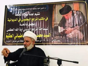 اقامت ممثلية قضاء الحمزة الشرقي التابعة لمكتب المرجع اليعقوبي (دام ظله) في الديوانية، مساء يوم امس , مجلس الفاتحة على روح فقيه أهل البيت (عليهم السلام) المرجع الديني الراحل آية الله العظمى السيد محمد سعيدالحكيم في القضاء.