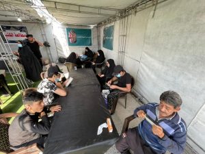 موكب الهيئة المركزية لموكب مكتب المرجع اليعقوبي (دام ظله) في الرصافة مستمر بخدمة زوار الامام موسى ابن جعفر (عليه السلام) وتقديم كل ما من شأنه يزيد الوعي والثقافة الدينية لدى أبناء المجتمع.