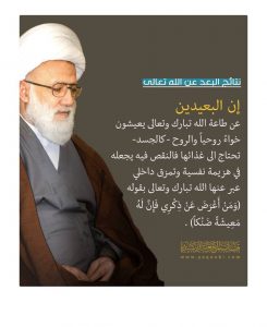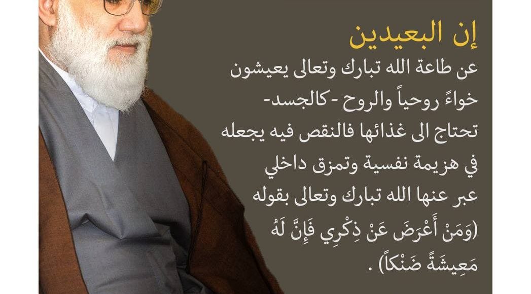 إن البعيدين عن طاعة الله تبارك وتعالى يعيشون خواءً روحياً والروح -كالجسد- تحتاج الى غذائها فالنقص فيه يجعله في هزيمة نفسية وتمزق داخلي عبر عنها الله تبارك وتعالى بقوله (وَمَنْ أَعْرَضَ عَنْ ذِكْرِي فَإِنَّ لَهُ مَعِيشَةً ضَنْكاً) .