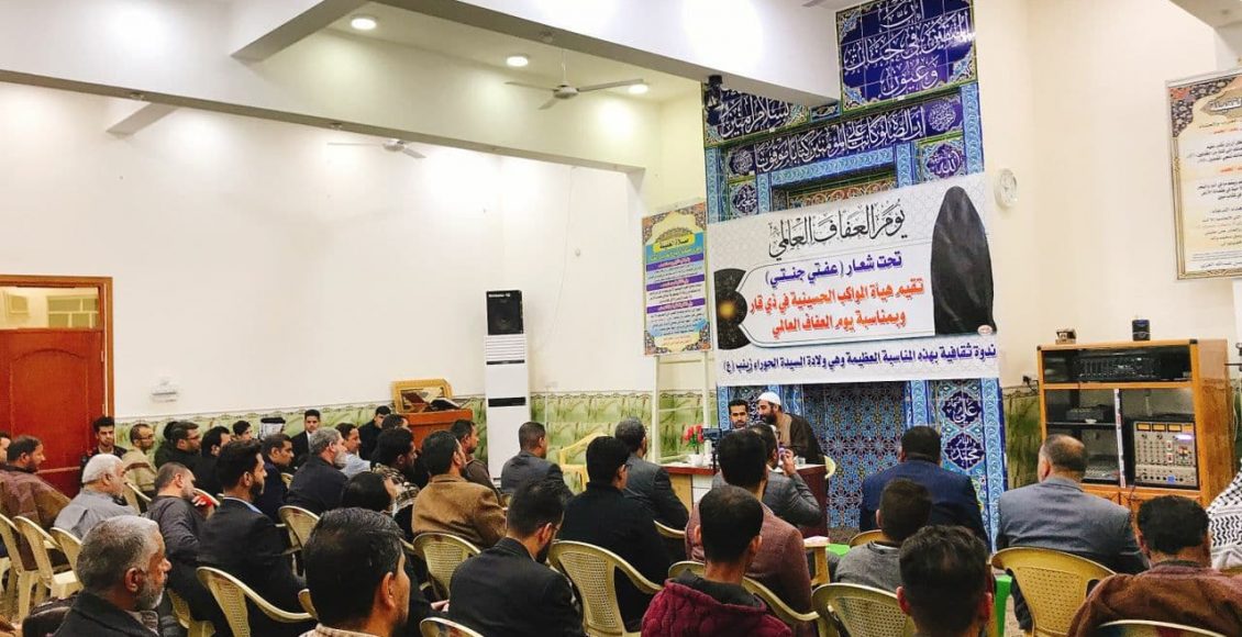قامت هيأة المواكب وبرعاية مــكــتـــب الــمــرجـــــع الــديــنــي الشــيــخ مــحــمــد الــيــعــقــوبــي ( دام ظــلــه ) فــــــي ذي قـــــــــا ر ندوة ثقافية بمناسبة يوم العفاف العالمي لبيان الاثار الاجتماعية المترتبة على العفة ، حيث عندما تعف المرأة والرجل عن عن كل ما يشينهما نحيا بمجتمع يسوده الحب والاحترام وطهارة الانفس .