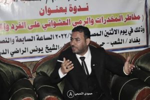بالصور: مؤسسة الصفوة التابعة لمكتب المرجع الديني الشيخ محمد اليعقوبي (دام ظله )بغداد الرصافة تنظم ندوة تثقيفية( حول مخاطر المخدرات واطلاق الرصاص العشوائي ) وذلك في منطقة الشعب حي الجزائر ببغداد في مضيف الشيخ يونس الدراجي من وجهاء وشيوخ قبيلة (الدراجي) وبحضور رجال الدين و جمع من شيوخ العشائر العشائر والوجهاء وحضور الشرطة المجتمعية