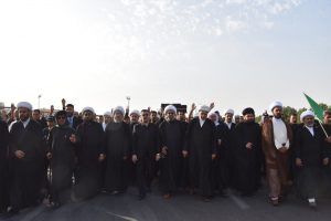 التشييع ابتدء مساء اليوم السبت من تقاطع العسكري بمركز المدينة وصولا الى مصلى الجمعة المركزية بمنطقة الجمعيات وقد شارك فيه عدد كبير من فضلاء واساتذة الحوزة العلمية والشخصيات العشائرية والرسمية