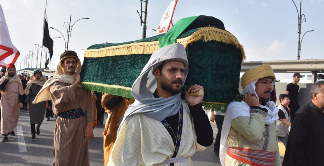 هيأة الشعائر والمواكب الحسينية في البصرة تحيي التشييع الرمزي لنعش الامام الصادق بمشاركة الالاف من البصريين