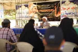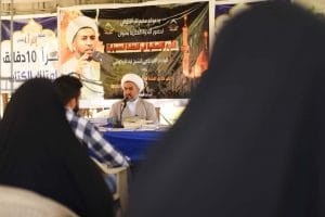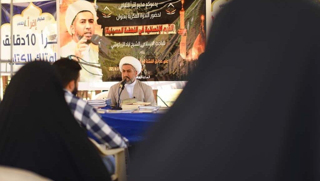 وشهد المخيم ايضا إقامة ندوة حوارية بعنوان القيم الإنسانية في النهضة الحسينية حاضر فيها الشيخ إياد الزركوشي”.