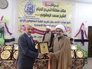 برعاية مكتب سماحه المرجع الديني اليعقوبي (دام ظله) بغداد الكرخ وتحت عنوان (تكريم صناع المستقبل) اقامت ممثلية التاجي وسبع البور على قاعة جامع وحسينية البتول(عليها السلام) حفل تكريم الطلبة الأوائل في الامتحانات النهائية للسادس العلمي وذلك لحصولهم على معدلات عالية ما بين (٩٥ الى 99.83) وذلك بحضور فضلاء الحوزة العلمية والكوادر التدريسية والإدارية لتربية الكرخ الثالثة ووجهاء وشيوخ العشائر في قضاء التاجي.